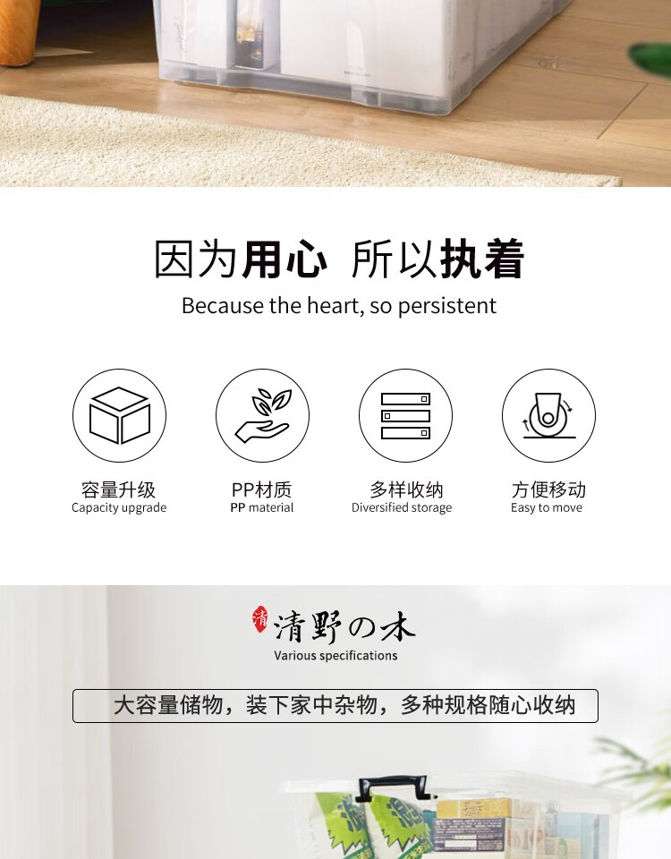 清野の木 高透塑料收纳箱 56L三个装XL特大号