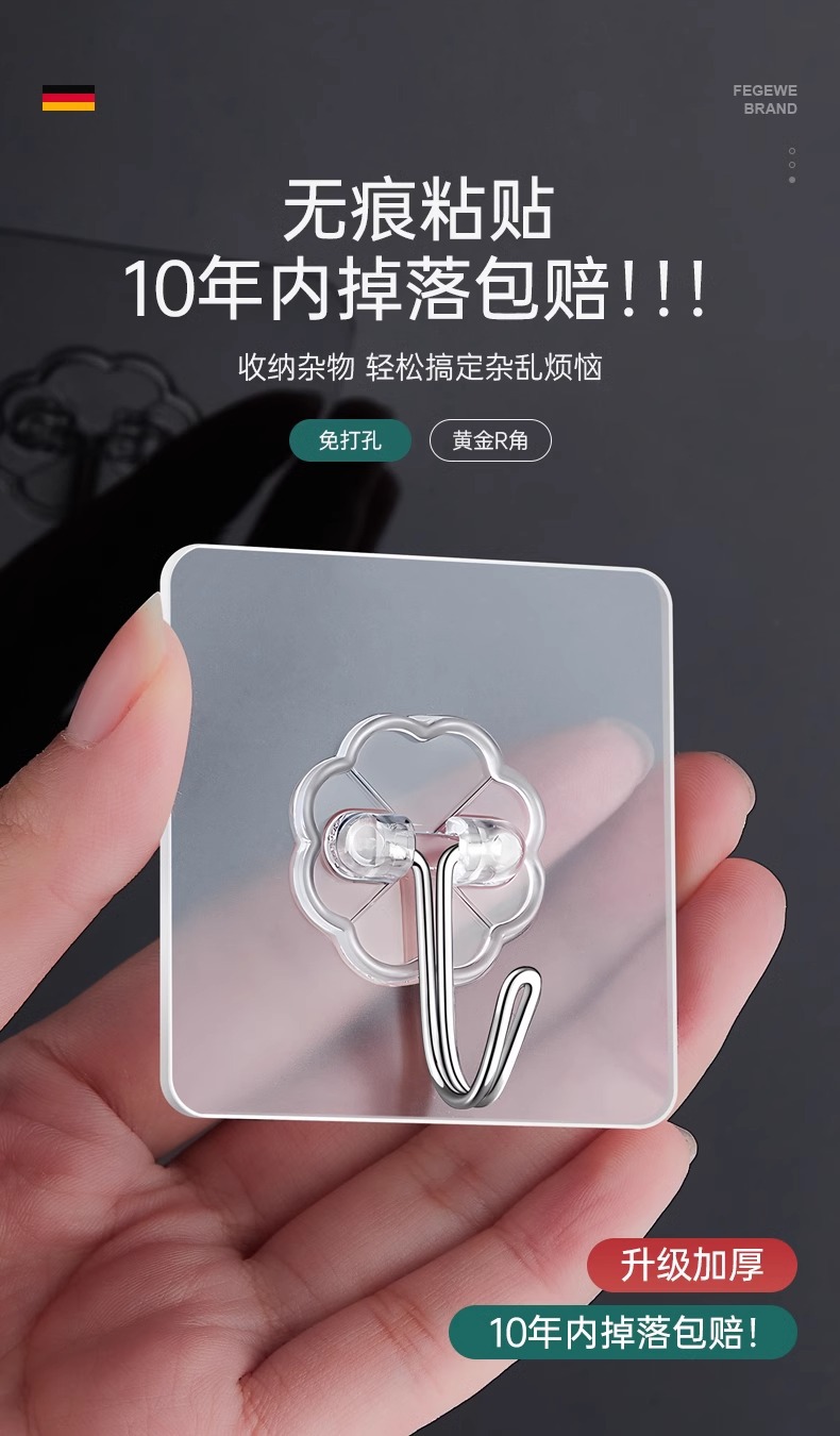 挂钩强力粘胶贴墙壁透明挂钩免打