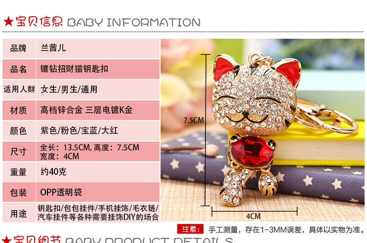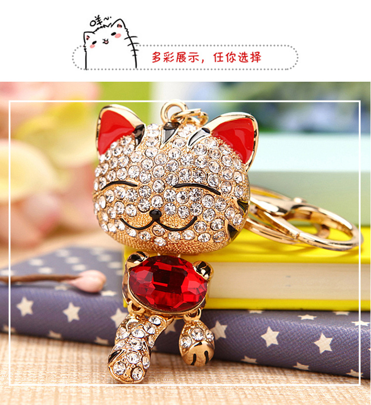 镶钻招财猫汽车钥匙扣女可爱包挂件金属钥匙链圈招财挂饰礼品批发