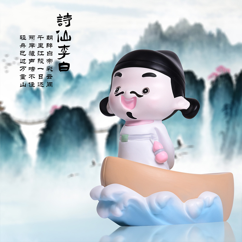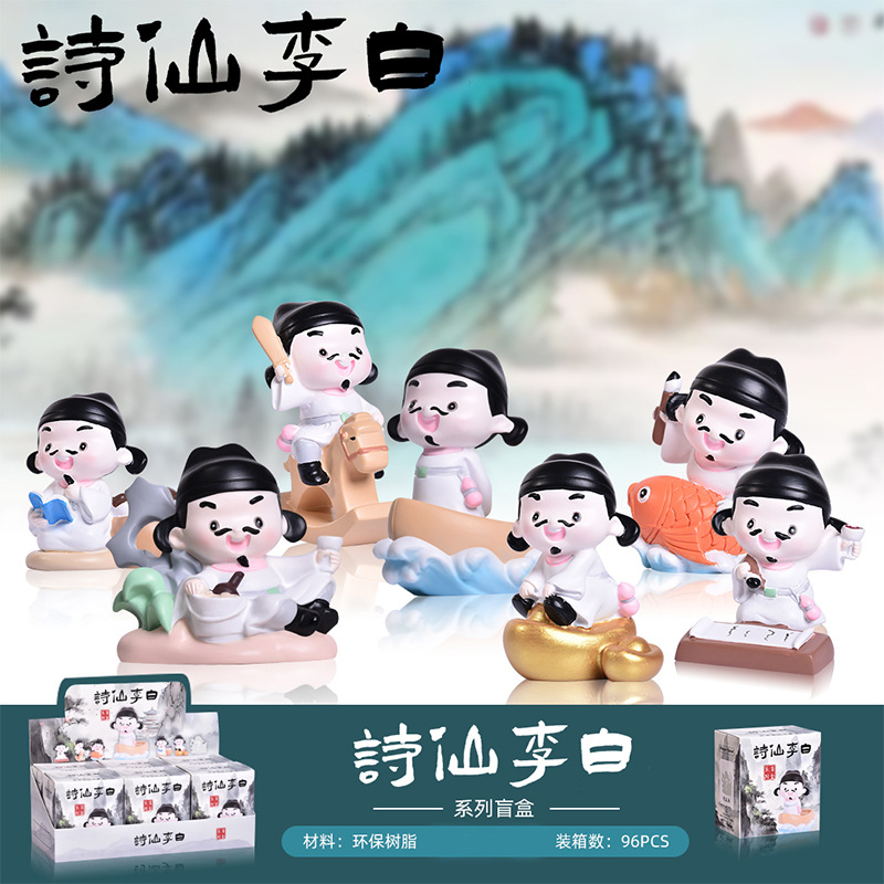 国潮古代人物诗仙李白系列盲盒摆件新中式家居书房装饰品